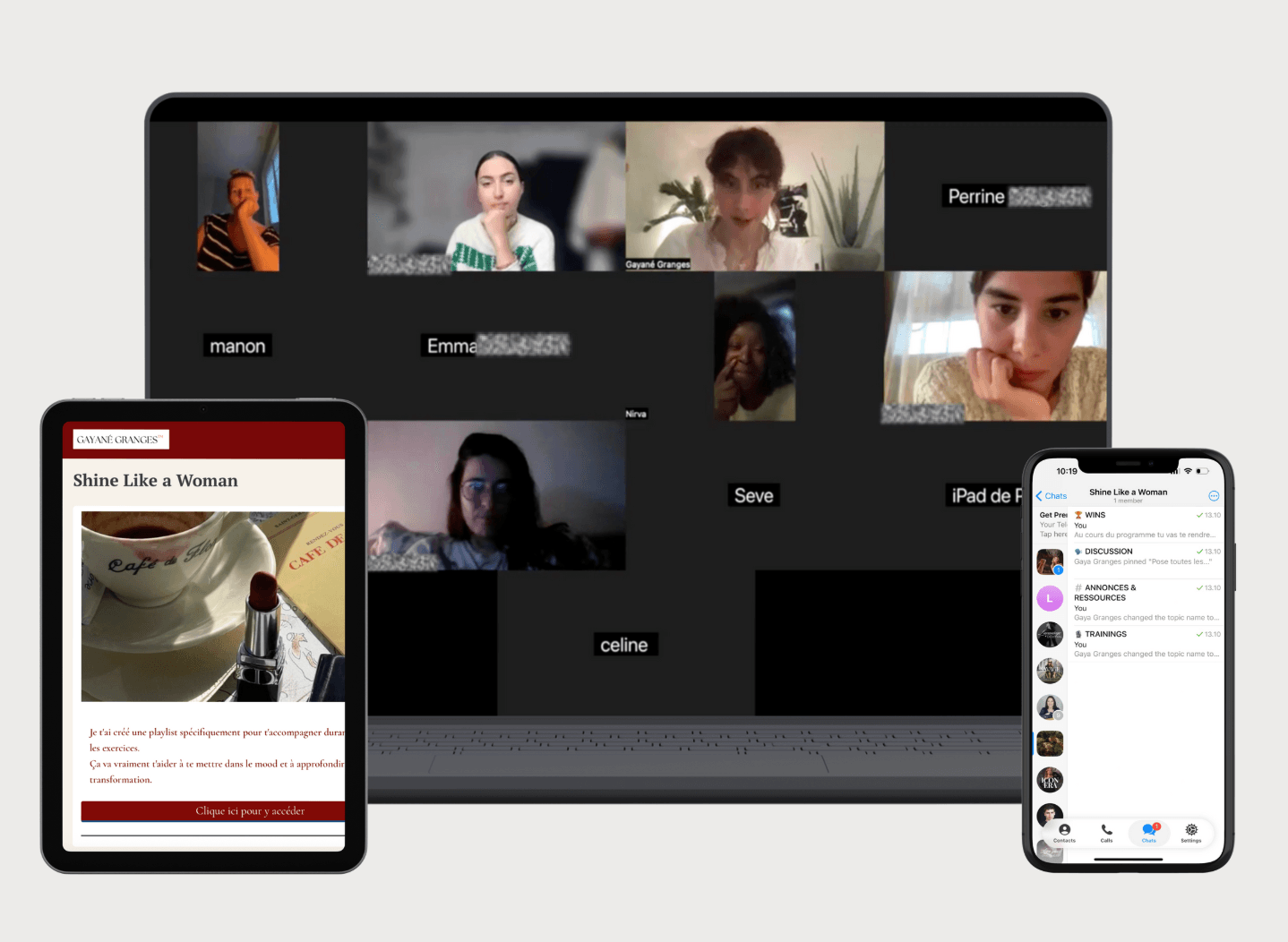 Accès à une communauté privée de femmes comme toi, prêtes à s’élever ensemble, partager leurs réussites et se soutenir dans ce processus de transformation. 🤍